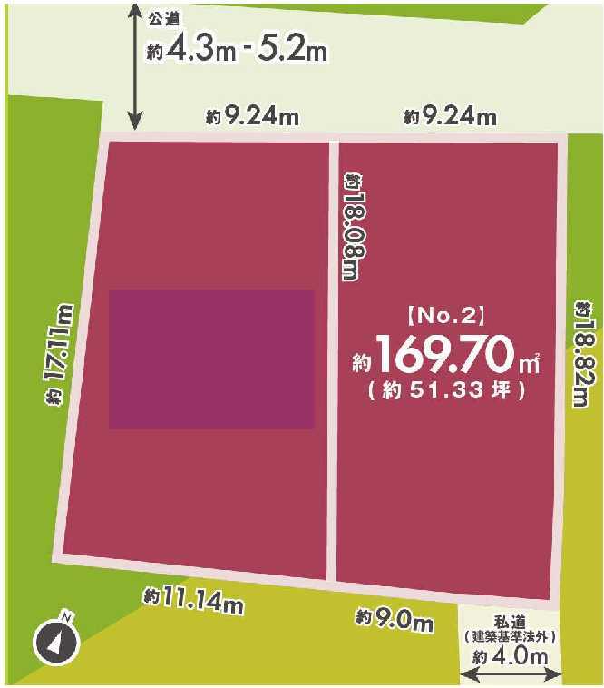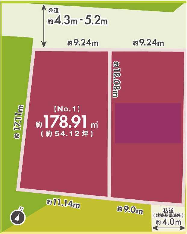 | 権利種類 | 所有権 | 接道 | 北側4.3M公道に接道 南側4M道路に接道 |