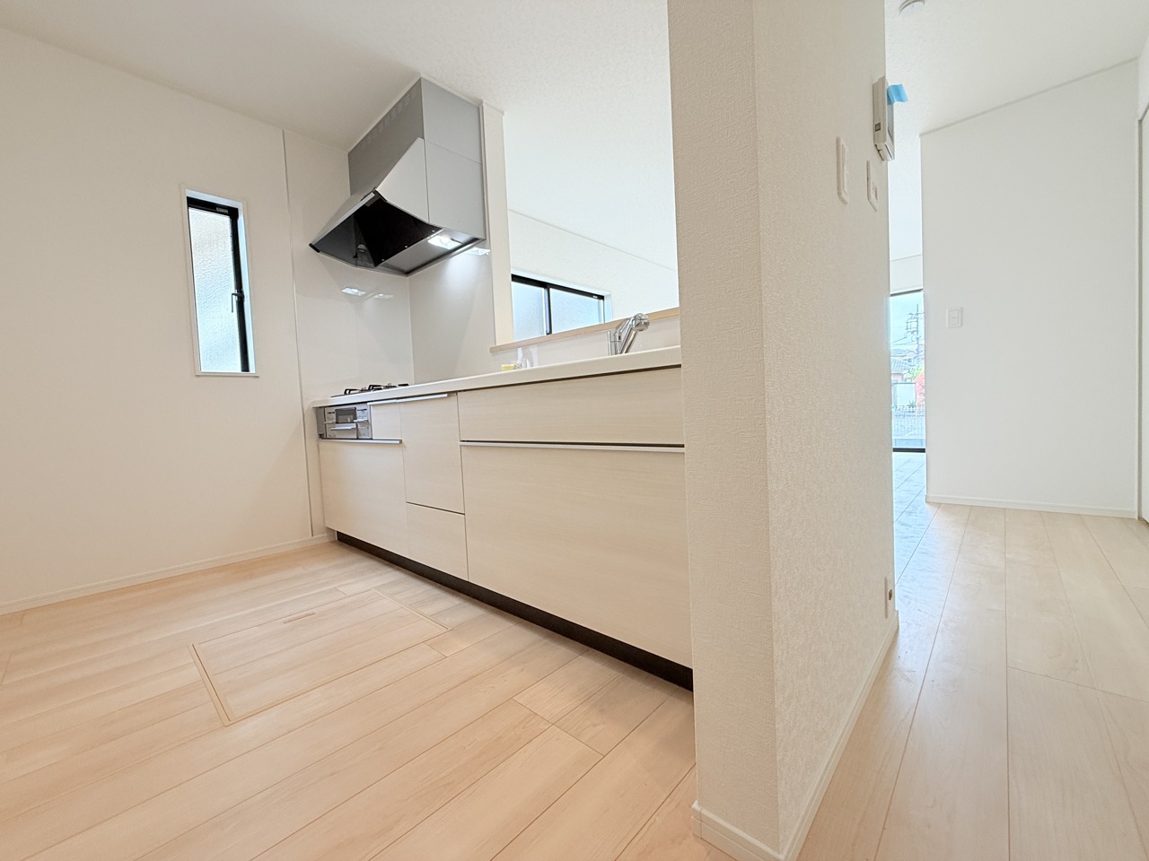 明るい光が降り注ぐ窓があるキッチンはお料理を作る時の気持ちもいつもより明るくなります。近くに窓があるので換気もしやすいですね。