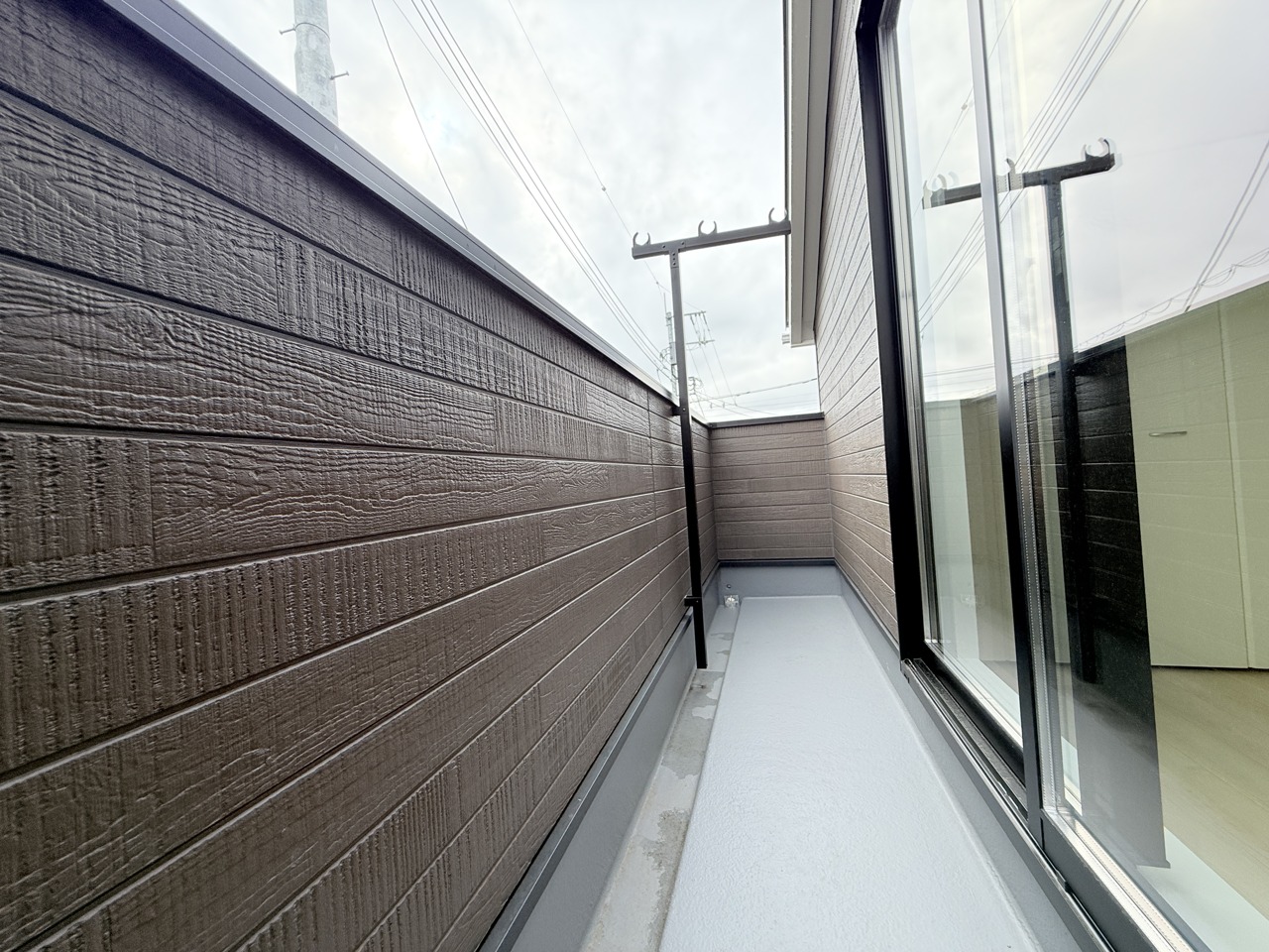 陽ざしが差込む明るいバルコニー。奥行きのあるバルコニーはお洗濯時に助かります。