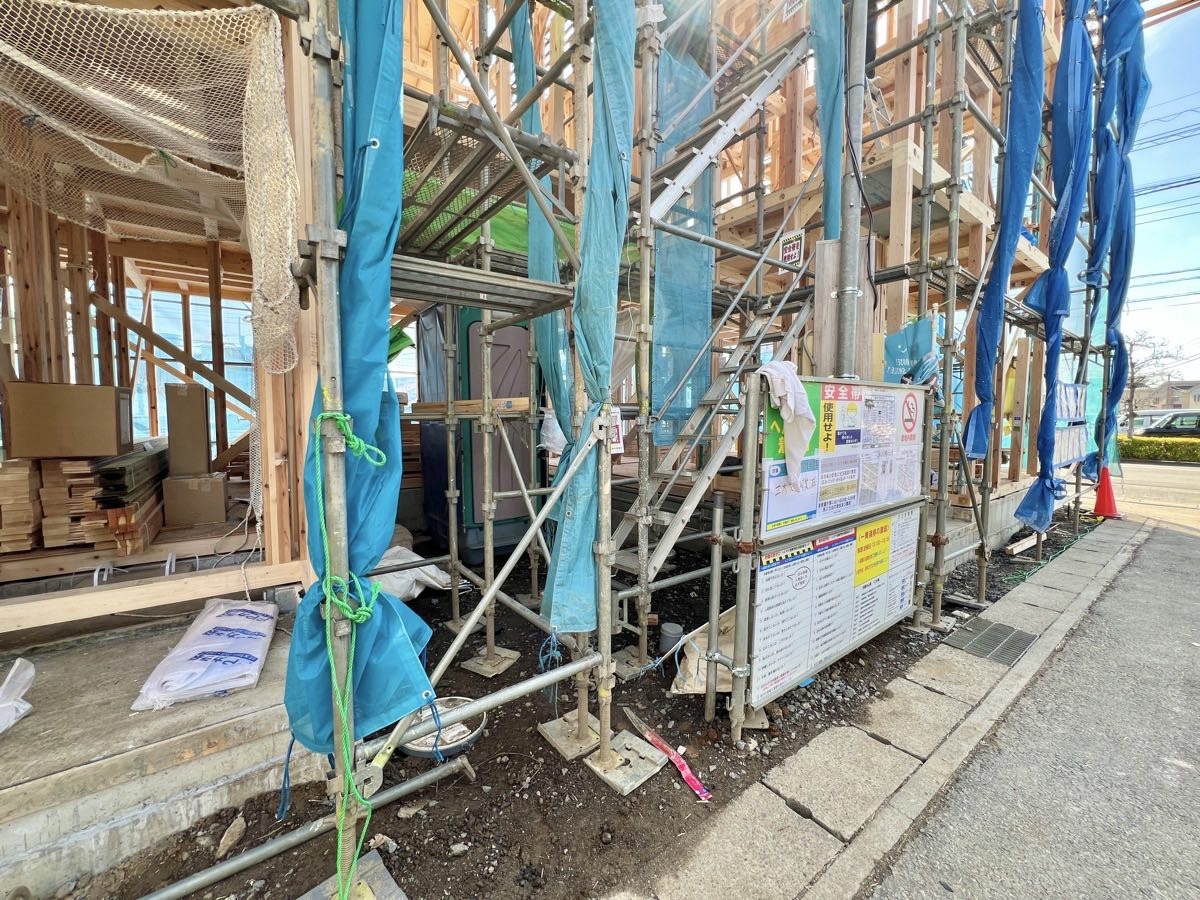 東武スカイツリーライン・野田線「春日部」駅から徒歩15分。2026年4月の完成に向けて建築が進む新築分譲住宅です。
