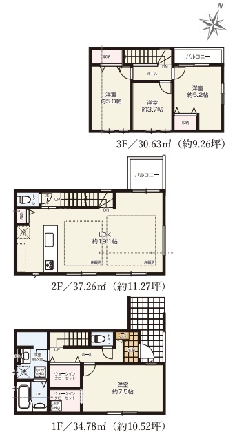 | 間取 | 4LDK (LDK19.1帖、洋室7.5帖、洋室5.2帖、洋室5.0帖、洋室3.7帖) | ||