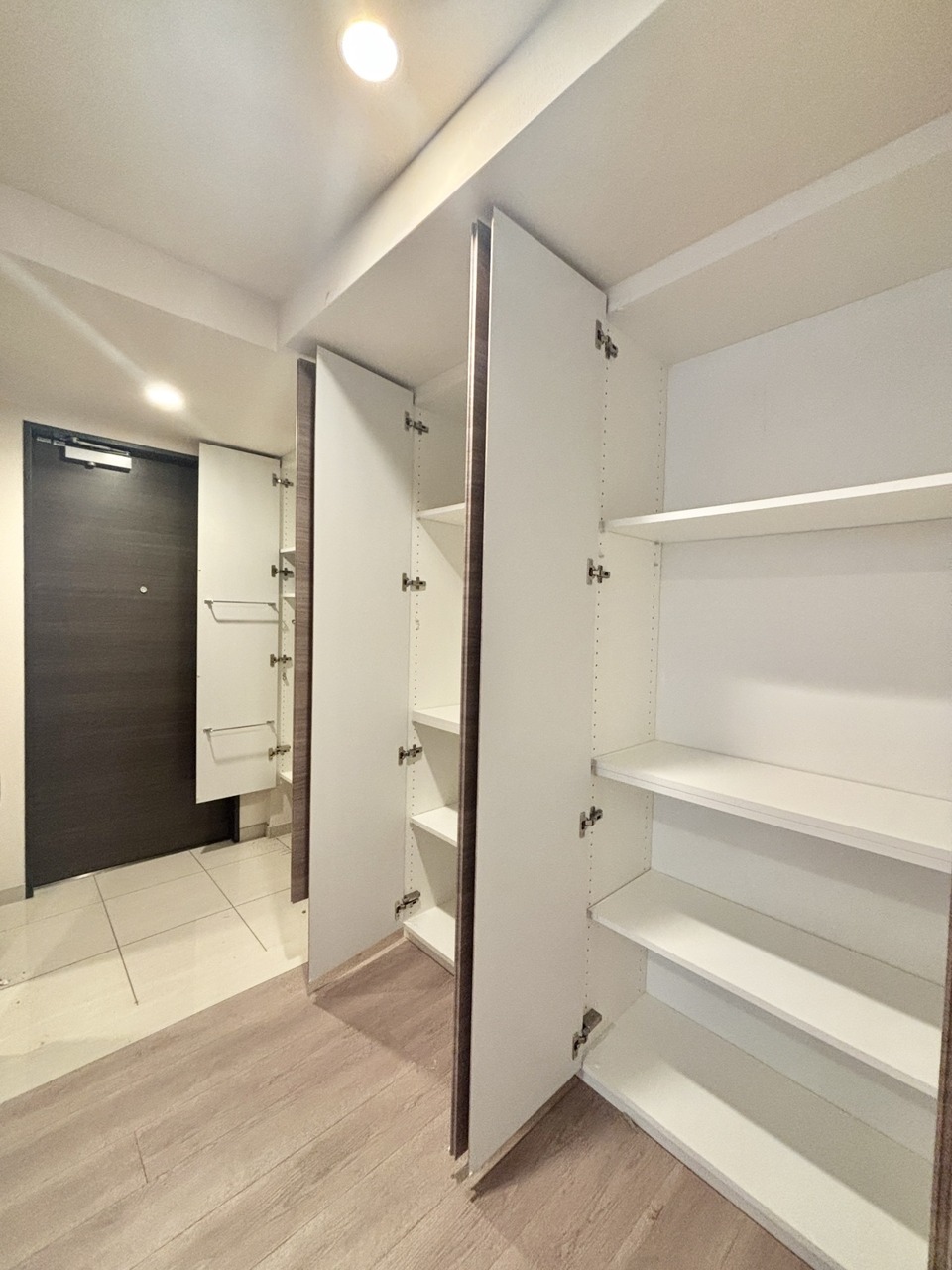 ホール部分には2カ所の収納スペースがございます。 収納が多く欲しい方には嬉しいですね。