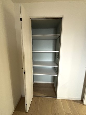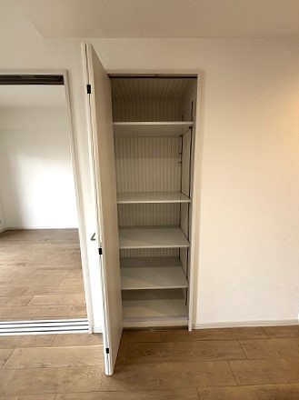 清潔感のある扉と、整然とした収納空間が心地よい印象を与えます。