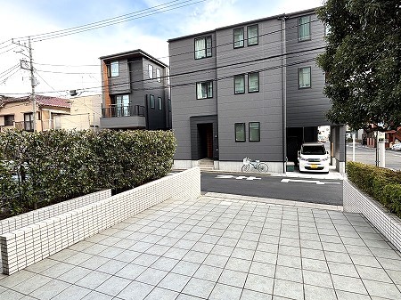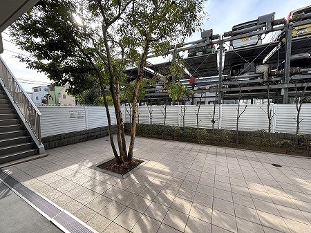 清潔感あるアプローチ、緑豊かな植栽が穏やかな印象を与えます。