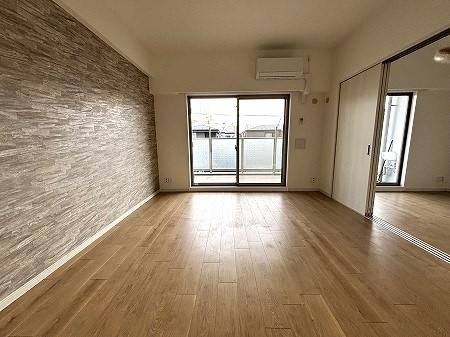 温もりある木の床と、洗練された壁の素材が調和する空間。