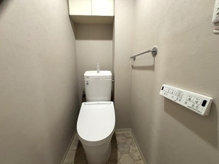 整然としたタイル張りの壁が、落ち着きと清潔感を醸し出しています。