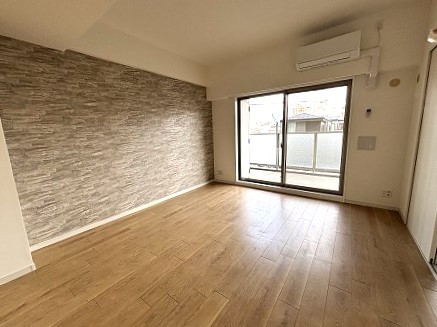 洗練された壁材が印象的な、明るく開放感のある空間。