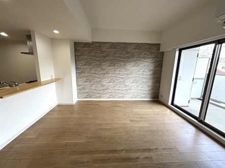 落ち着いた木目の床と、自然な光が心地よい広がりを感じさせる空間。