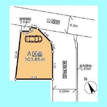 | 権利種類 | 所有権 | 接道 | 東側6M私道に接道 北側4.5M公道に1.9M接道 |