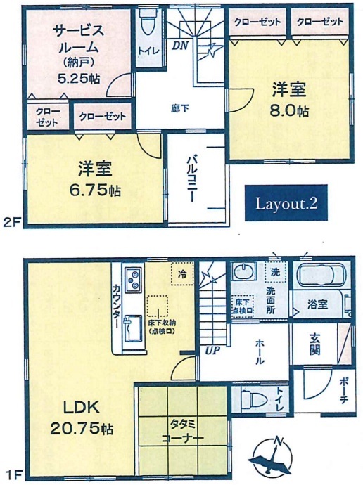 | 間取 | 2SLDK (LDK20.7帖、洋室8.0帖、洋室6.75帖、S5.25帖) | ||