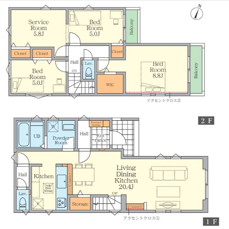 | 間取 | 4LDK+WIC (LDK20.4帖、洋室8.6帖、洋室5.8帖、洋室5.0帖、洋室5.0帖) | ||