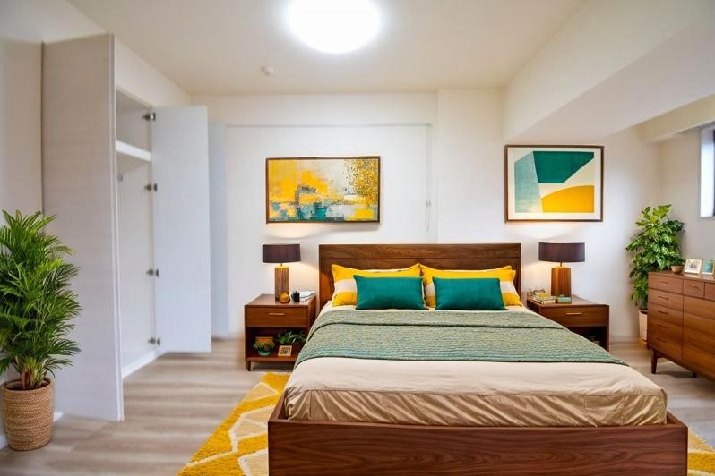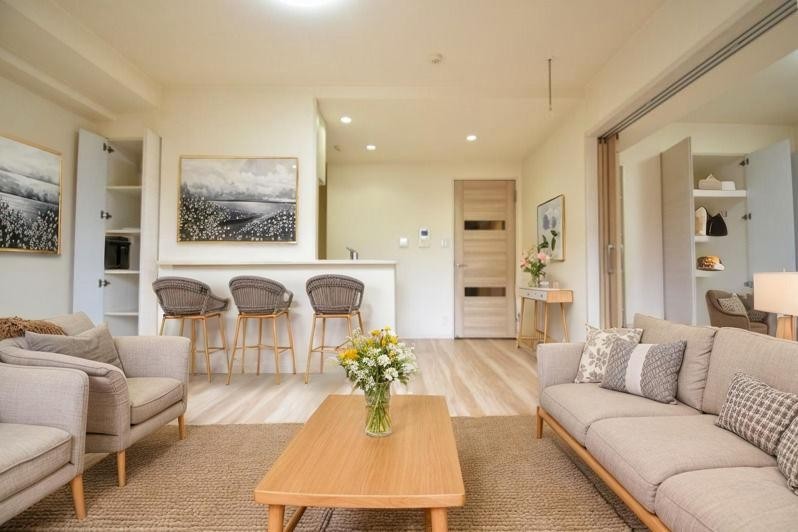 洋室はモダンなデザインと機能性を備え、快適な生活空間に。明るい窓から差し込む自然光が広々とした空間をさらに明るく開放的に感じさせます。
