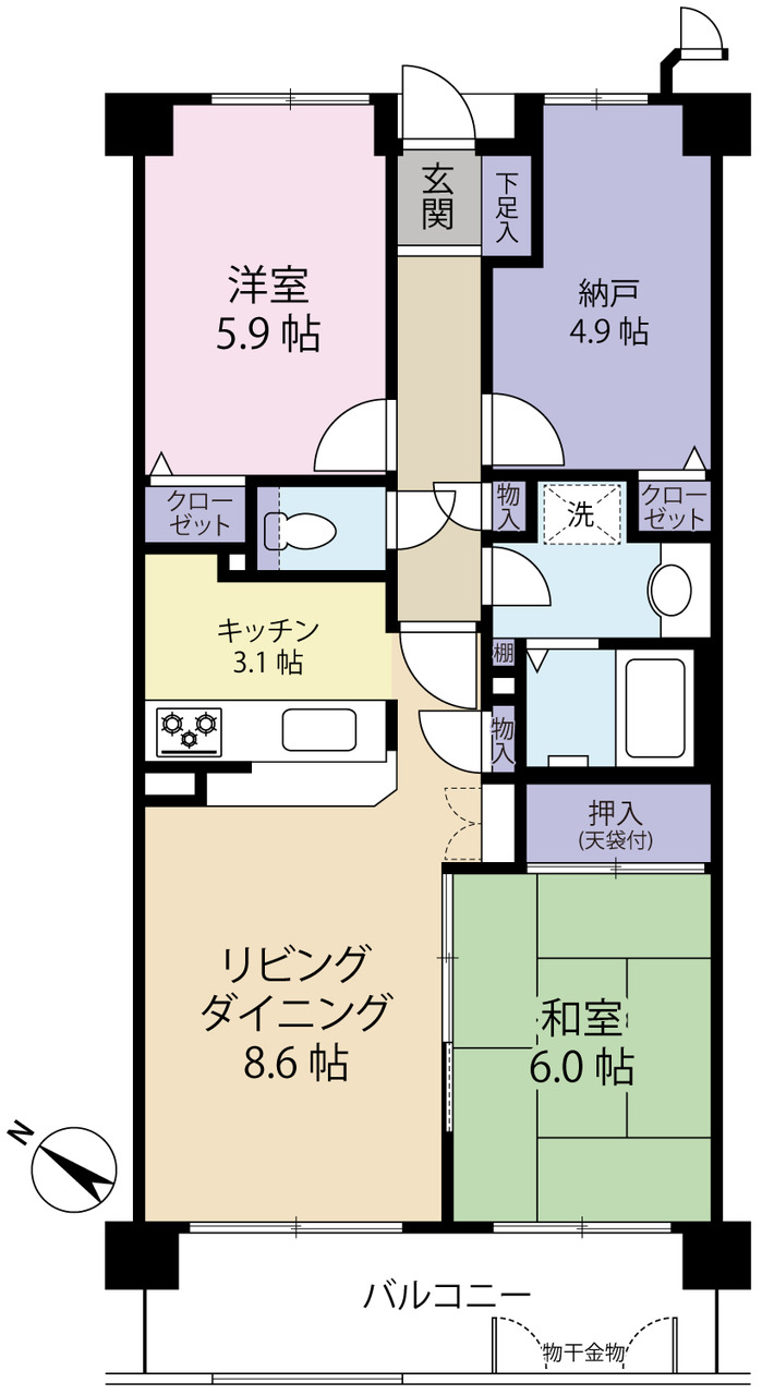 | 間取 | 2SLDK (LDK11.7帖、洋室5.9帖、洋室4.9帖、和室6帖) | ||