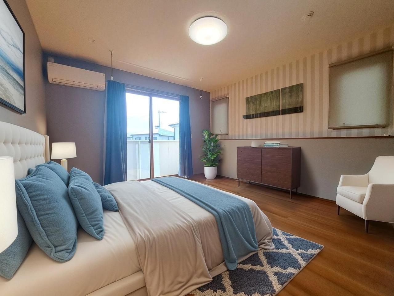 洋室はモダンなデザインと機能性を備え、快適な生活空間に。明るい窓から差し込む自然光が広々とした空間をさらに明るく開放的に感じさせます。 本画像はCGで作成しており、実際に現地に家具は置かれておりません。また、価格に家具は含まれておりません。