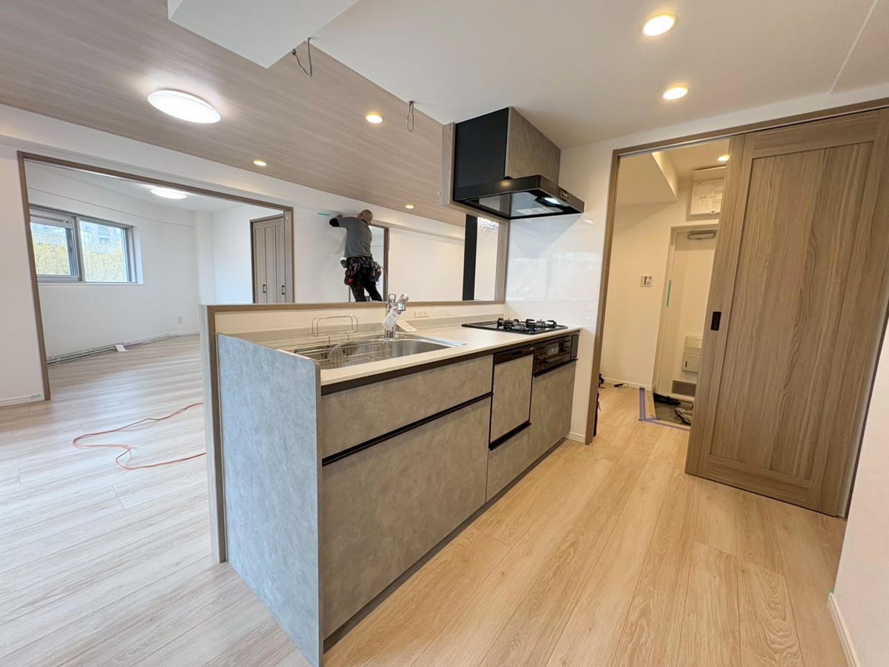 カウンターキッチンは、キッチン側とリビング側に分かれてお店間隔でのお食事も可能!! お休みの日には、いろいろな楽しみ方を家族みんなでお楽しみください