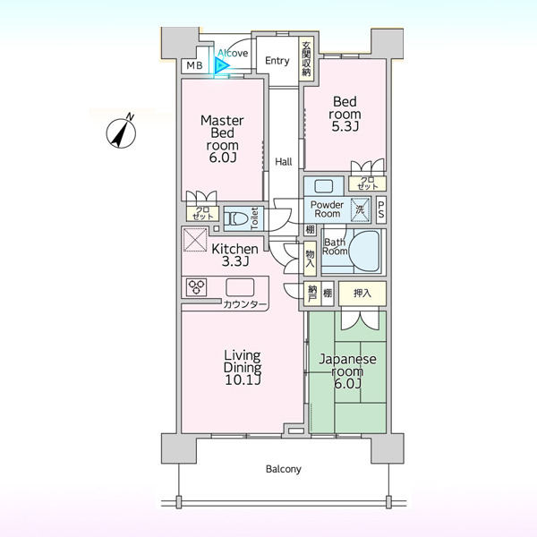 | 間取 | 3LDK (LDK13.4帖、和室6帖、洋室6帖、洋室5.3帖) | ||