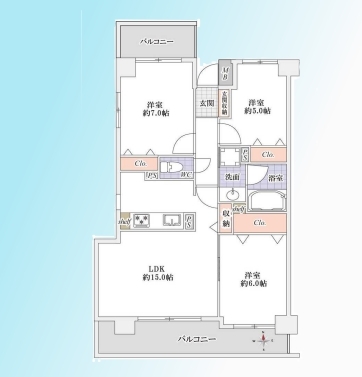 | 間取 | 3LDK (LDK15帖、洋室7帖、洋室5帖、洋室6帖) | ||