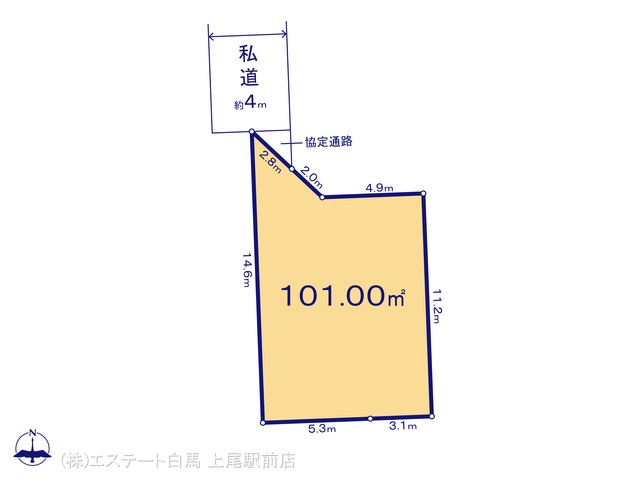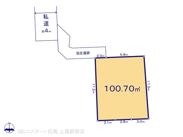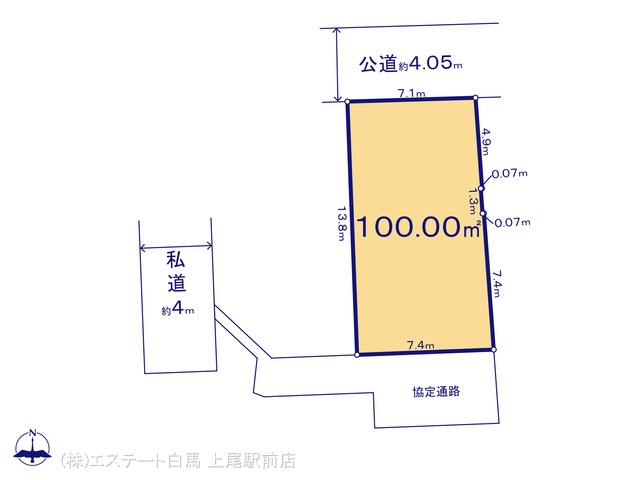 | 接道 | 北側4.05M公道に接道 西側4M私道に接道 |