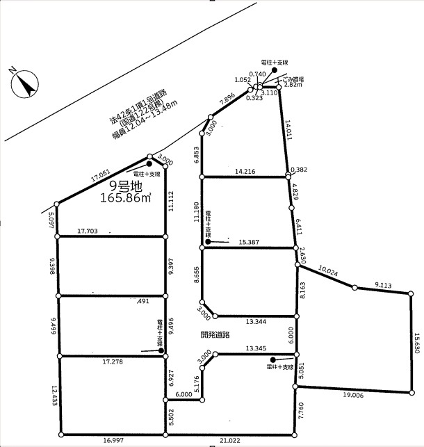 | 権利種類 | 所有権 | 接道 | 北側13M公道に17M接道 南東側6M私道に11.1M接道 |