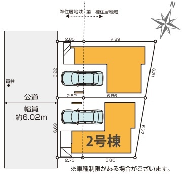 | 備考・制限等 | ※法第22条区域、高度地区(20メートル地区・15メートル地区) ※敷地面積のうち18.60平米が準居住地域 ※建物面積に車庫部分14.49平米含む |