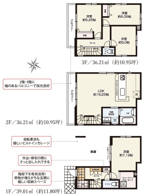 | 建物面積 | 111.43m² 実測 (車庫部分14.49平米含む) | ||