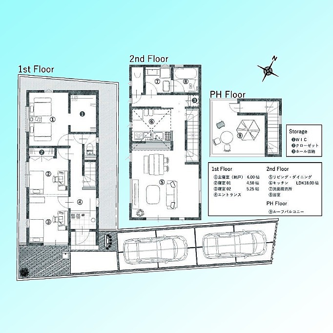 | 間取 | 2LDK (LDK18帖、洋室6帖、洋室4.5帖、洋室5.25帖) | ||