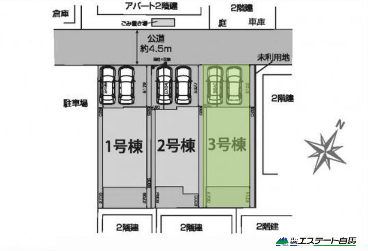 | 備考・制限等 | 航空法、重要土地調査法(届出不要)、3号棟は未利用地(1.28平米)含む2筆となります。また東側隣地との将来是正に関する覚書を取得しています。 | ||
