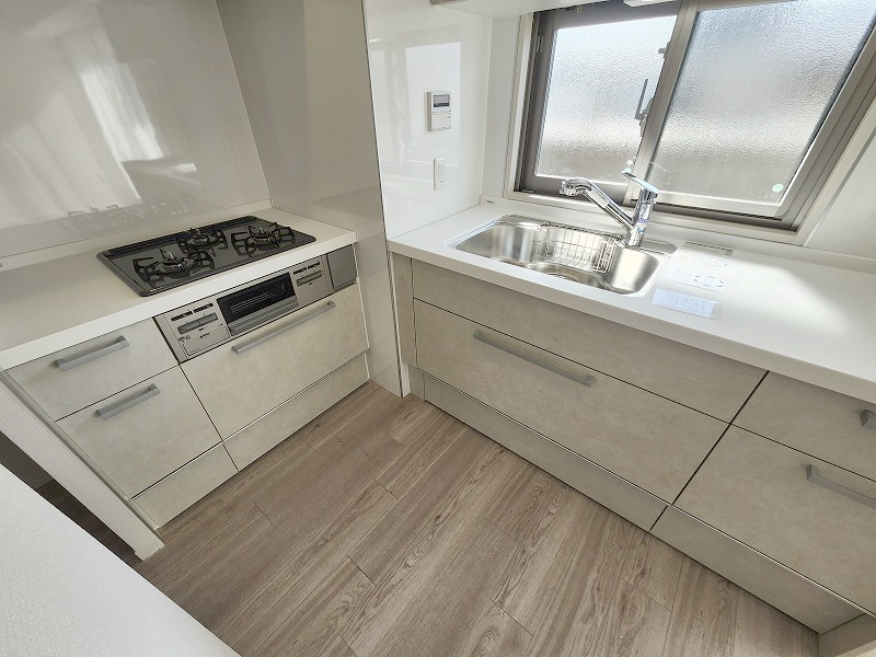 キッチンは、カウンターや壁付けタイプ、アイランドタイプ様々なパターンが御座います。 お好みも分かれる所ではありますが、壁付け対応は閉鎖的にならずに明るいキッチンスペースとしてご希望を頂く事も多いタイプ。