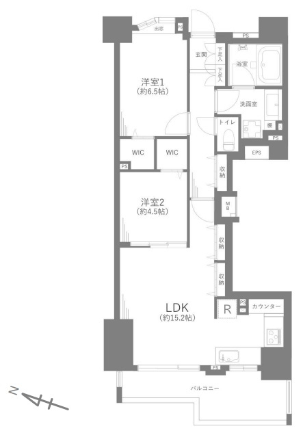 | 専有面積 | 64.43m² (壁芯) | ||