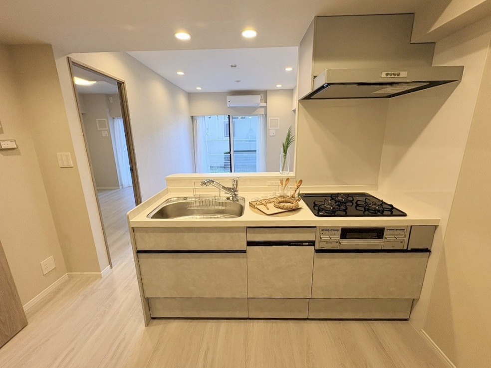 お料理をしながらリビングの家族やゲストとの会話が楽しめるカウンタータイプのキッチン。毎日のお料理を楽しく快適に。