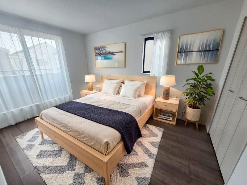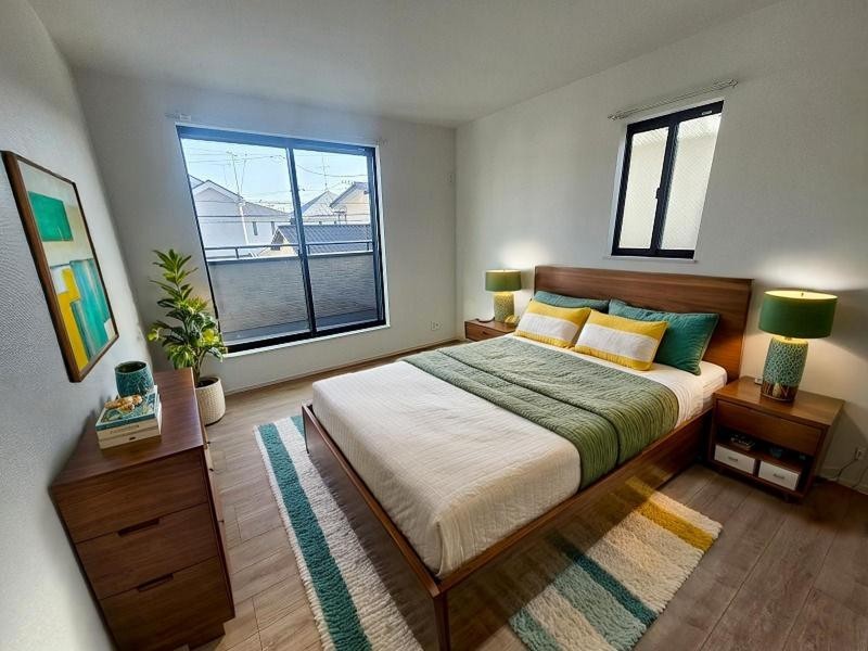 A号棟 洋室はモダンなデザインと機能性を備え、快適な生活空間に。明るい窓から差し込む自然光が広々とした空間をさらに明るく開放的に感じさせます。