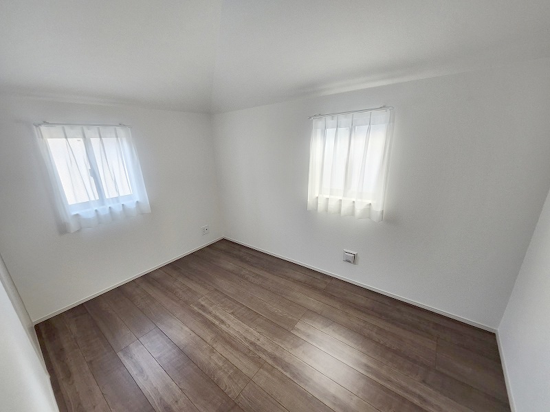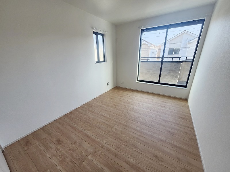 B号棟 洋室はモダンなデザインと機能性を備え、快適な生活空間に。明るい窓から差し込む自然光が広々とした空間をさらに明るく開放的に感じさせます。