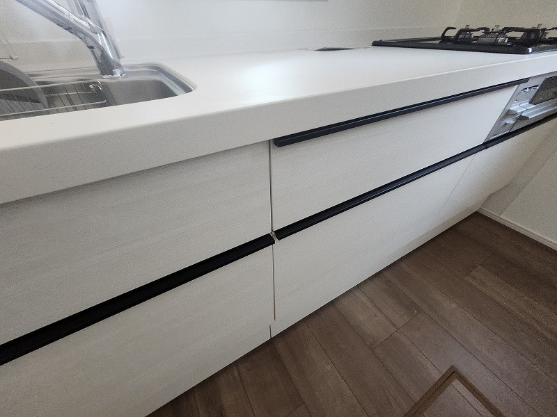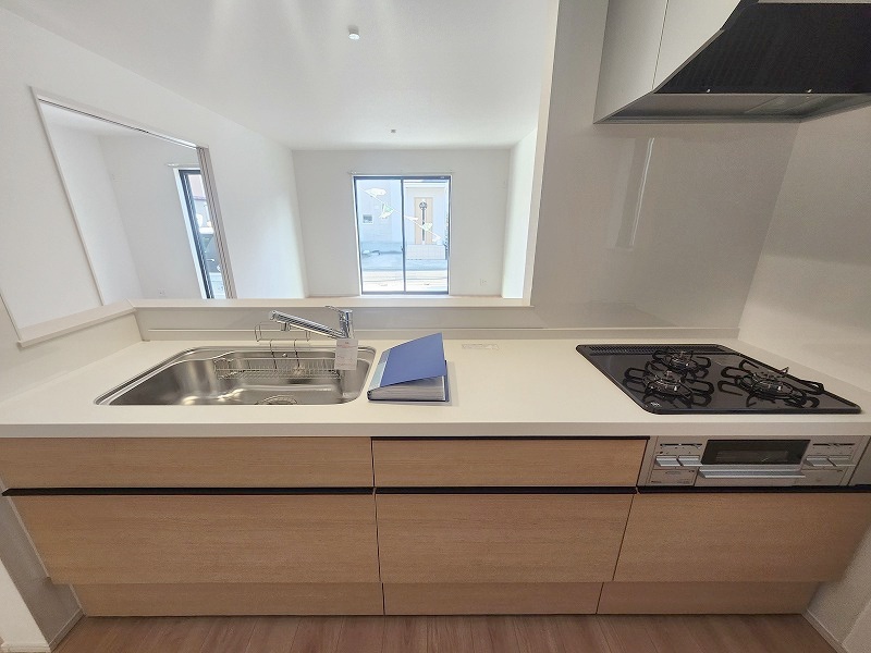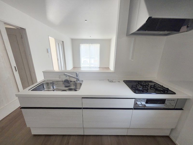 B号棟 カウンターキッチンならではの開放的な見通し、全体が見渡せることでご家族の団欒スペースもより明るく笑顔が溢れる空間となります。