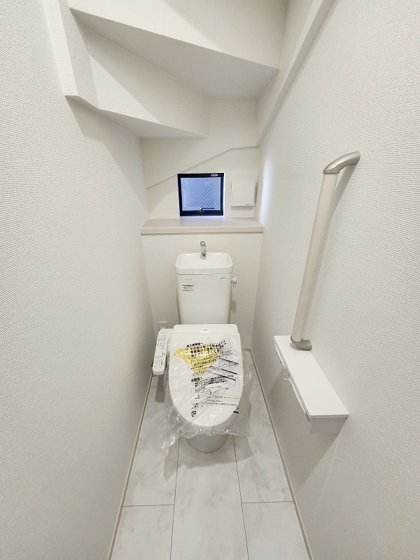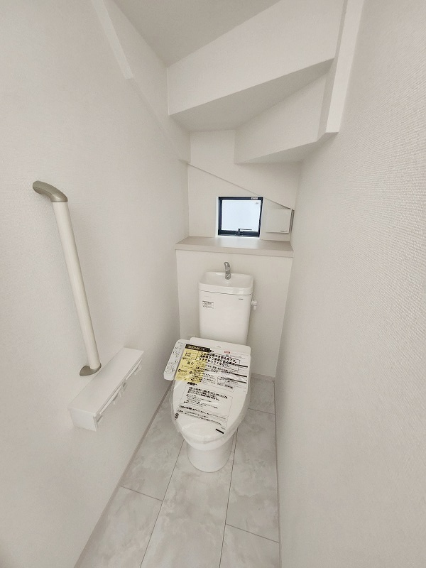 B号棟 階段下を有効活用したトイレスペース。 便座はもちろんウォシュレット。