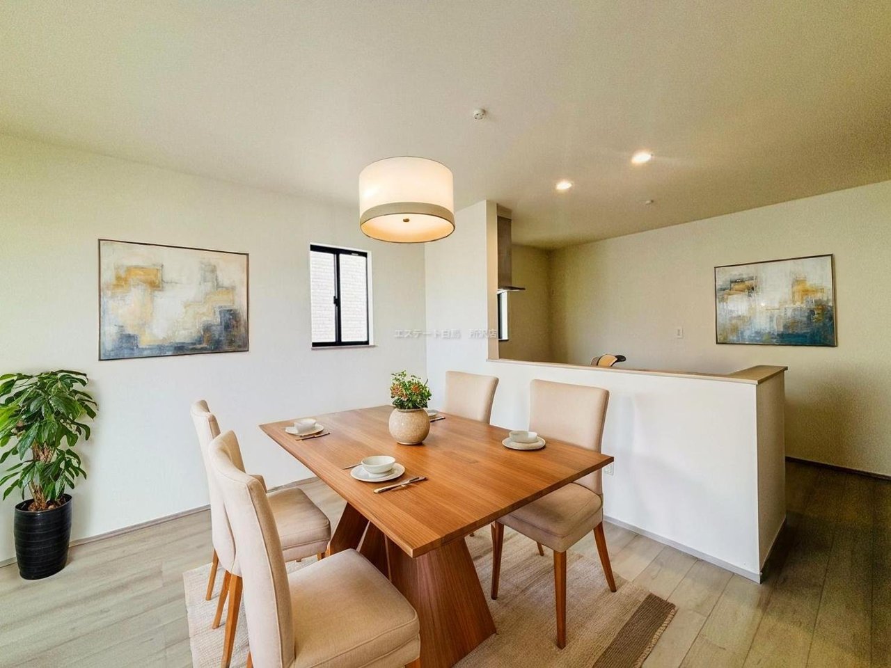 A号棟 家族団欒のリビング。陽光差し込む食卓には家族の会話とスマイルが溢れます。いつまでもここで食卓を囲みたくなる、そう感じさせてくれるスペース。 2026/04/16m
