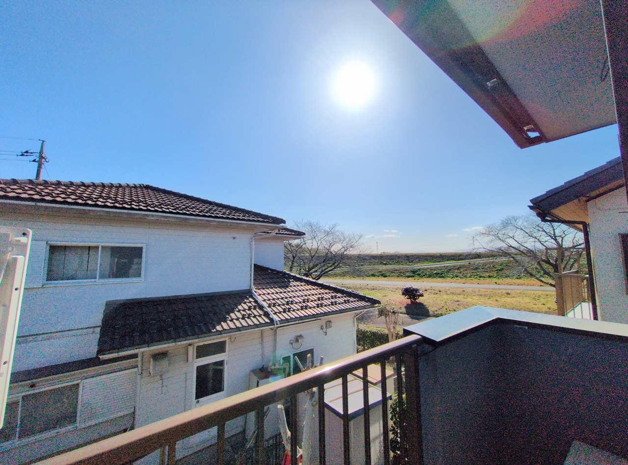 低層住居専用地域ならではのベランダの光景。辺りには高い建物がありません。