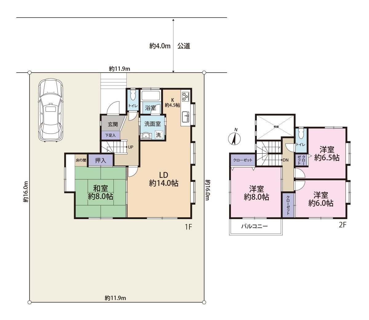 | 権利種類 | 所有権 | 接道 | 北側4M公道に11.9M接道 |