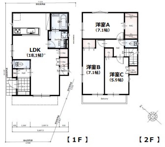 | 間取 | 3LDK (LDK18.1帖、洋室7.1帖、洋室7.1帖、洋室5.9帖) | ||