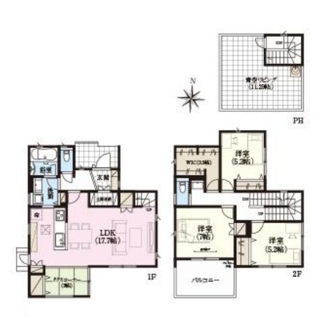 | 間取 | 3LDK + 畳コーナー:3帖 (LDK17.7帖、洋室7帖、洋室5.2帖、洋室5.2帖) | ||