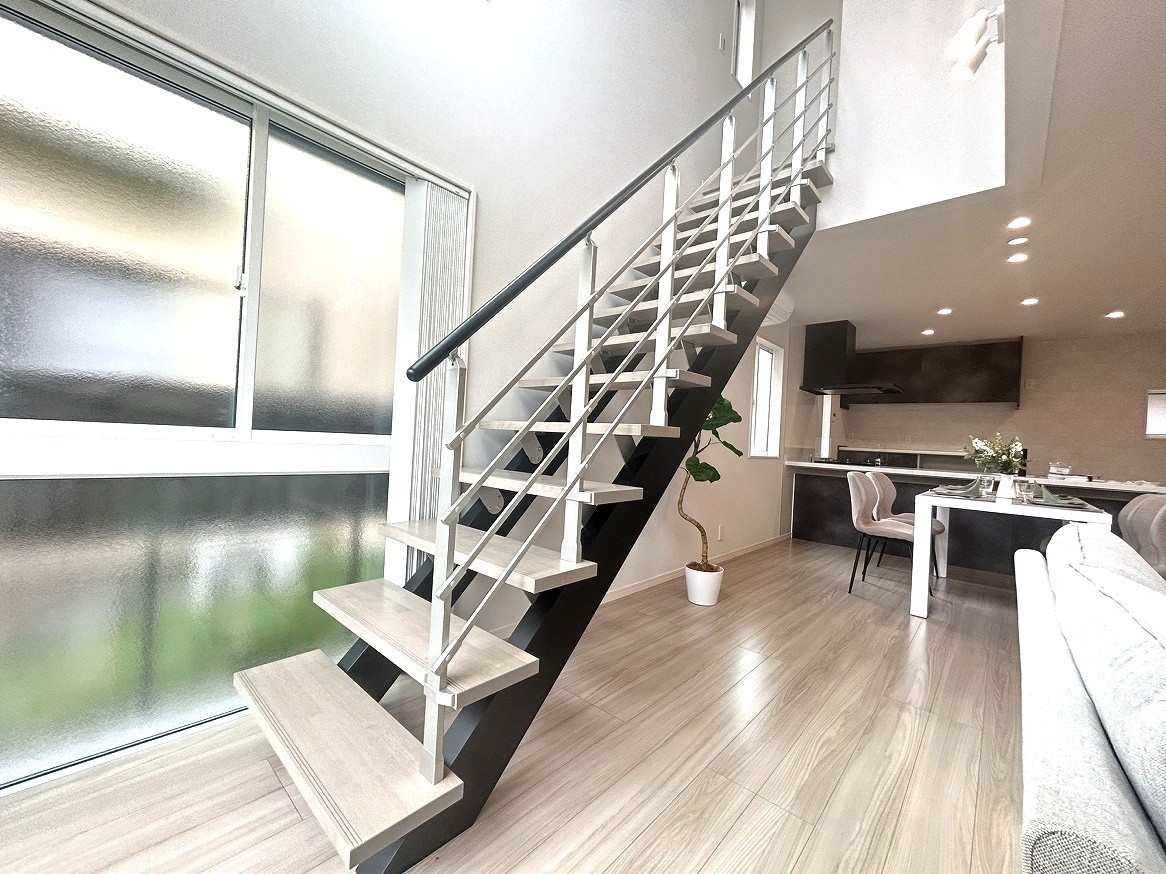 LDKは約20帖で、吹き抜けやアクセント階段等で開放感のある空間です。