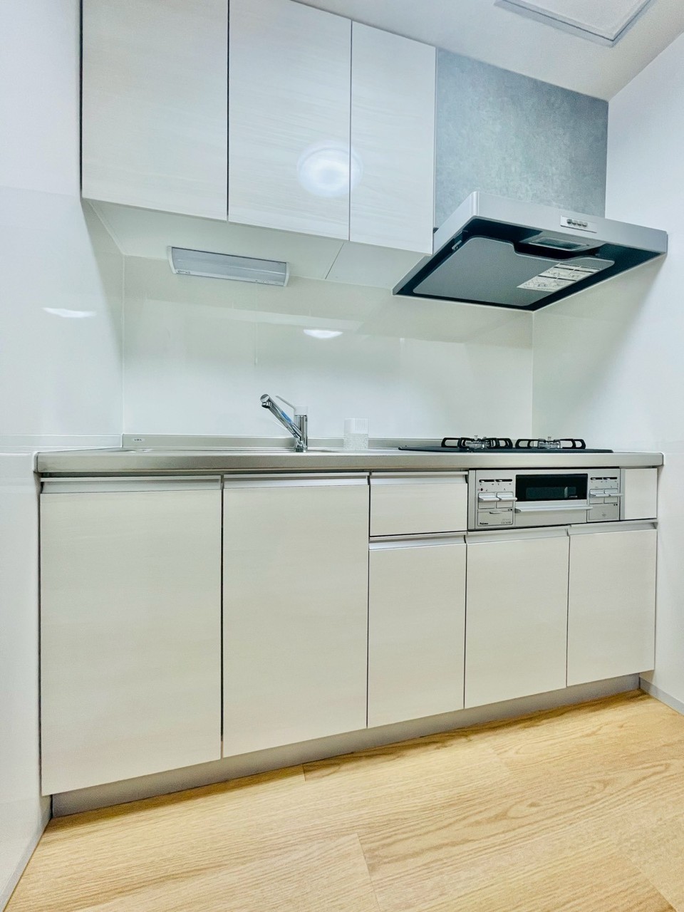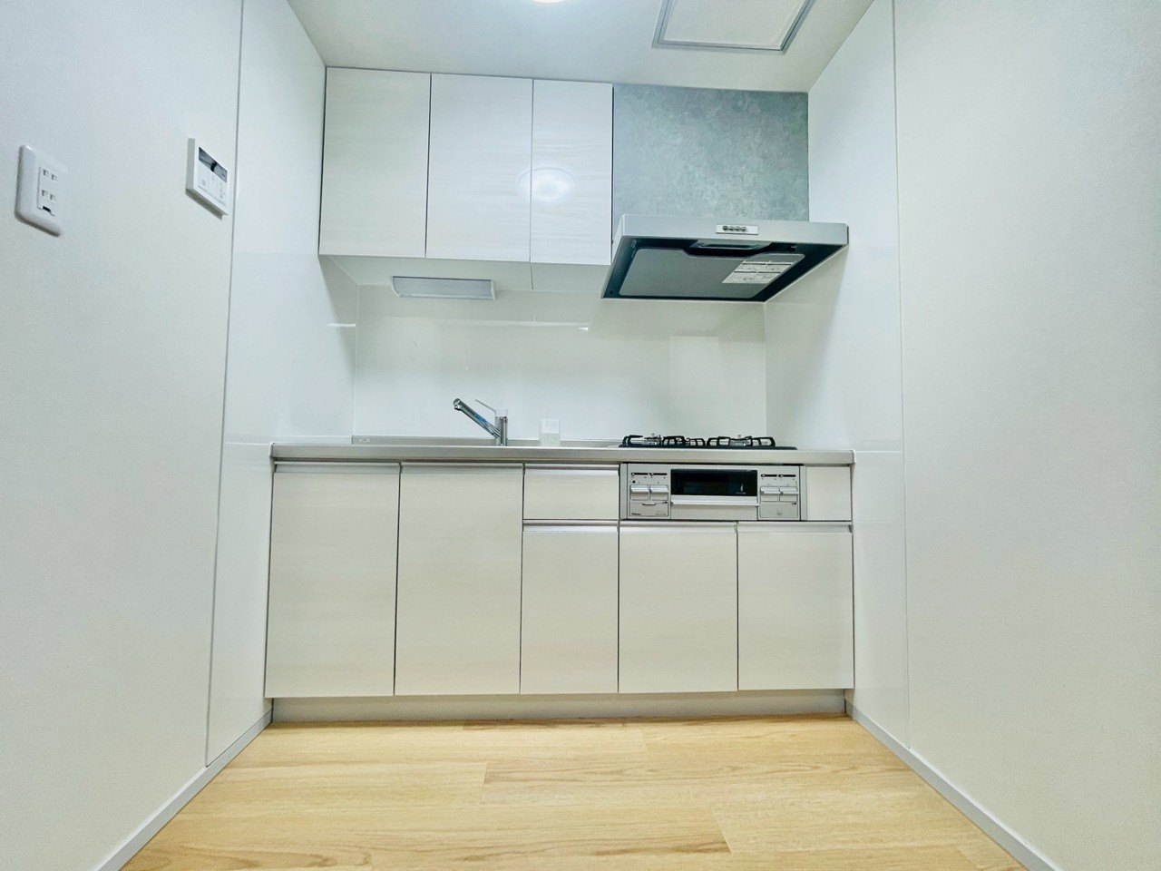 整然とした空間に、清潔感あふれるキッチンが佇む。