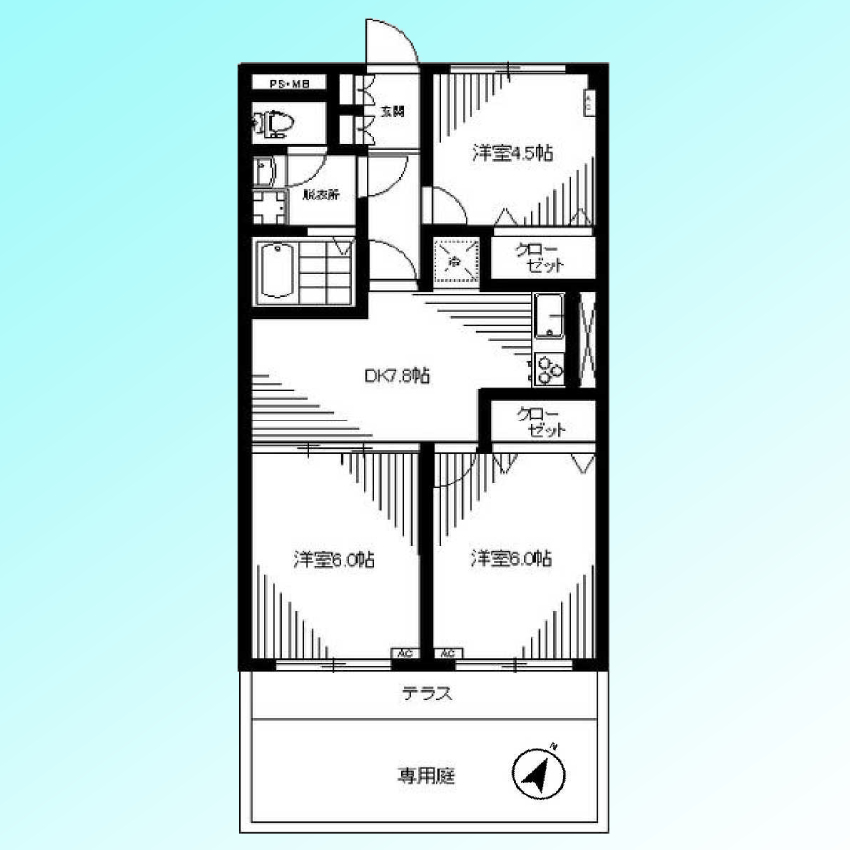 | 間取 | 3DK (DK7.8帖、洋室6帖、洋室6帖、洋室4.5帖) | ||