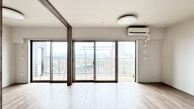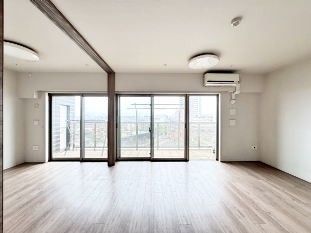 南西側のお部屋から出入りできる、奥行きのあるワイドバルコニー。心地よい陽射しと暖かな風を楽しむことが出来ます。