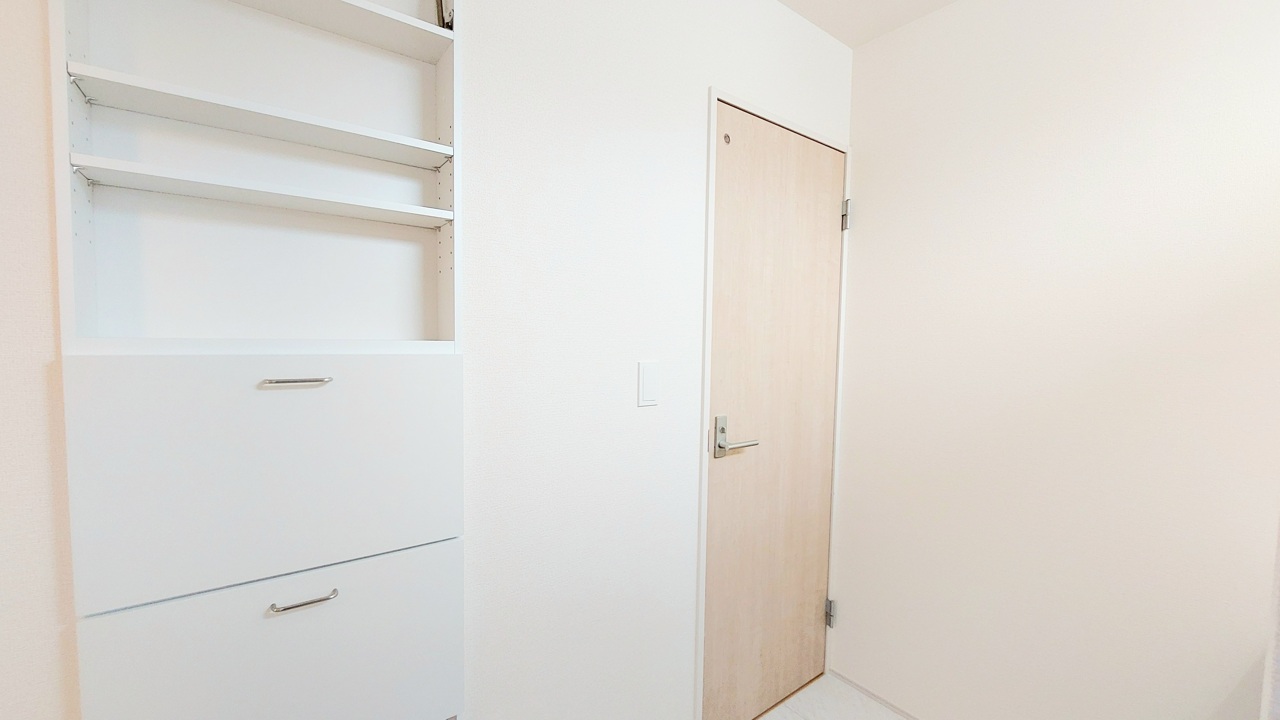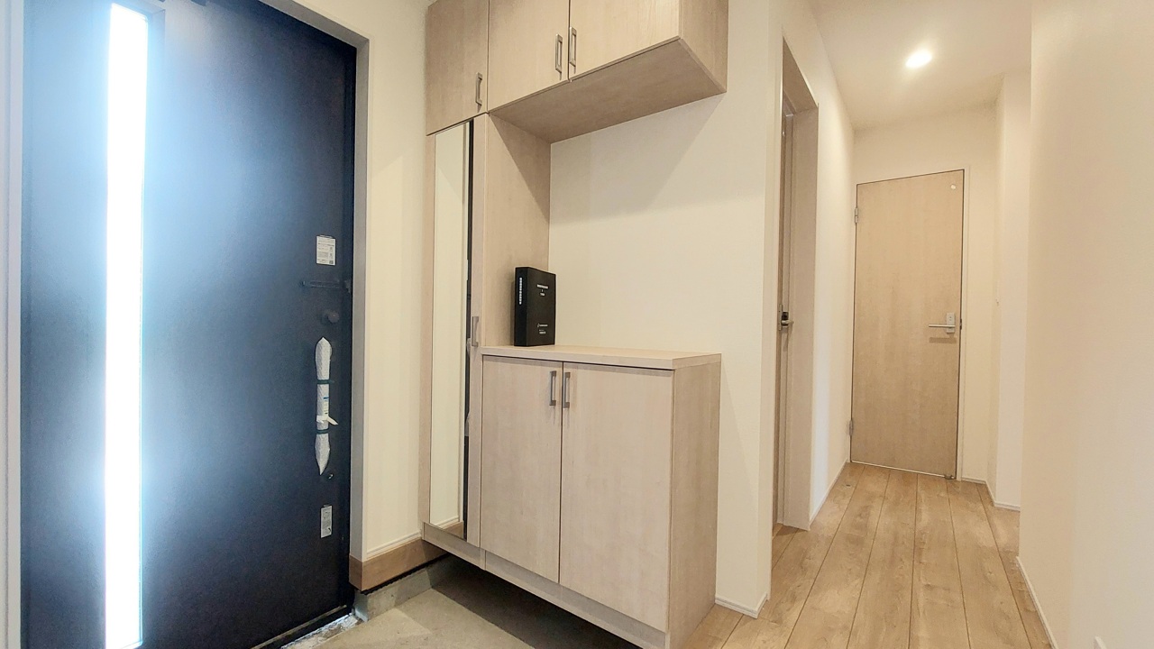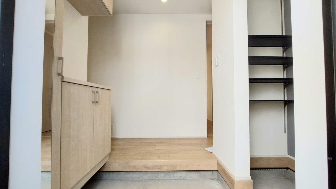 明るく開放的な玄関、靴の脱ぎ履きもしやすく、収納も豊富でご家族皆様の靴をスッキリ収納できます。
