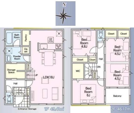 | 間取 | 4LDK (LDK18帖、洋室6帖、洋室4.8帖、洋室4.5帖、洋室4.5帖) | ||