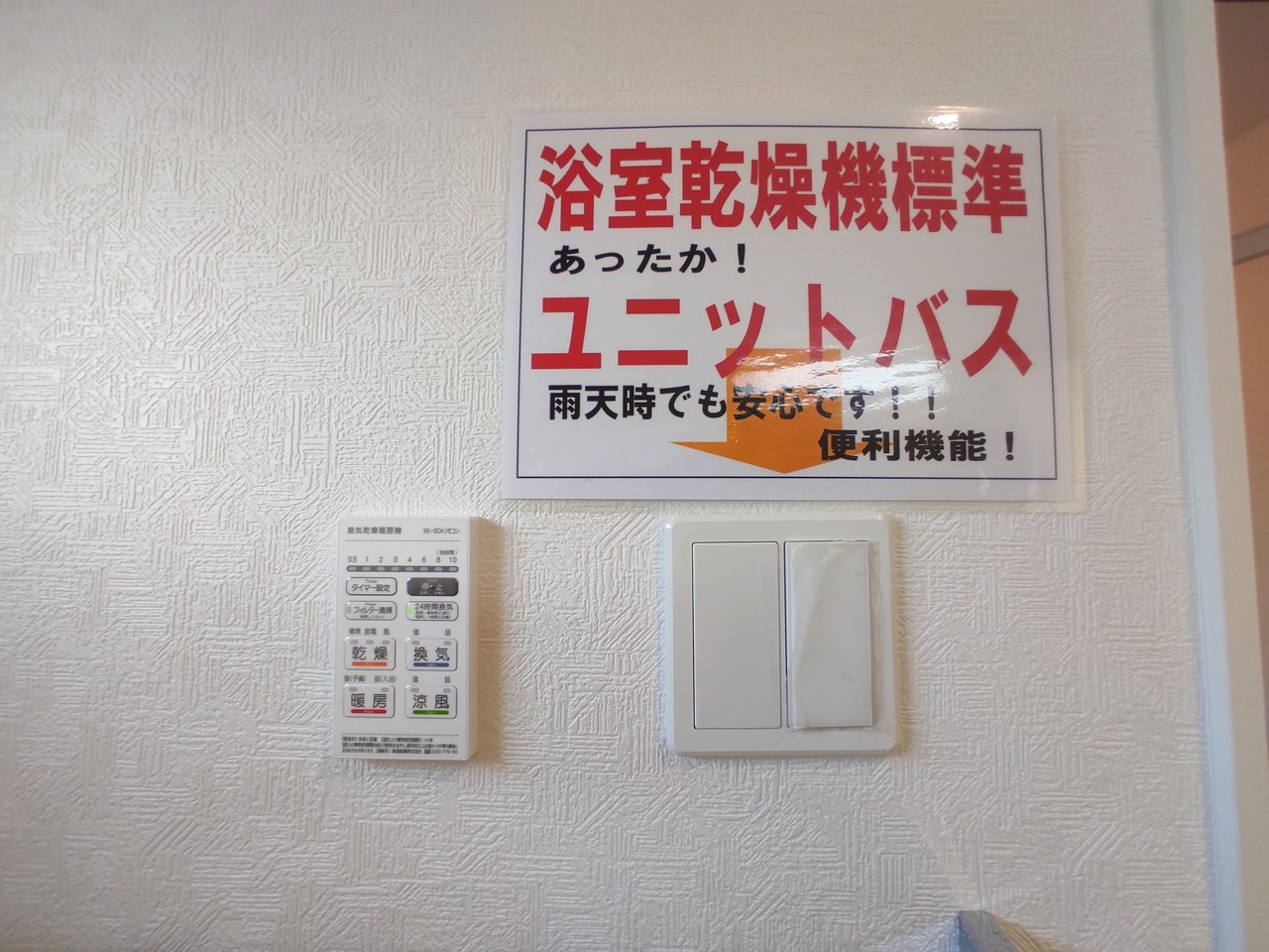 バスユニット1坪タイプ、浴室乾燥機、手すり付き。