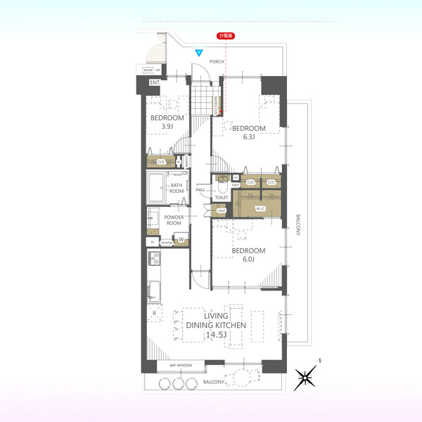 | 間取 | 3LDK (LDK14.5帖、洋室6.3帖、洋室6帖、洋室3.9帖) | ||