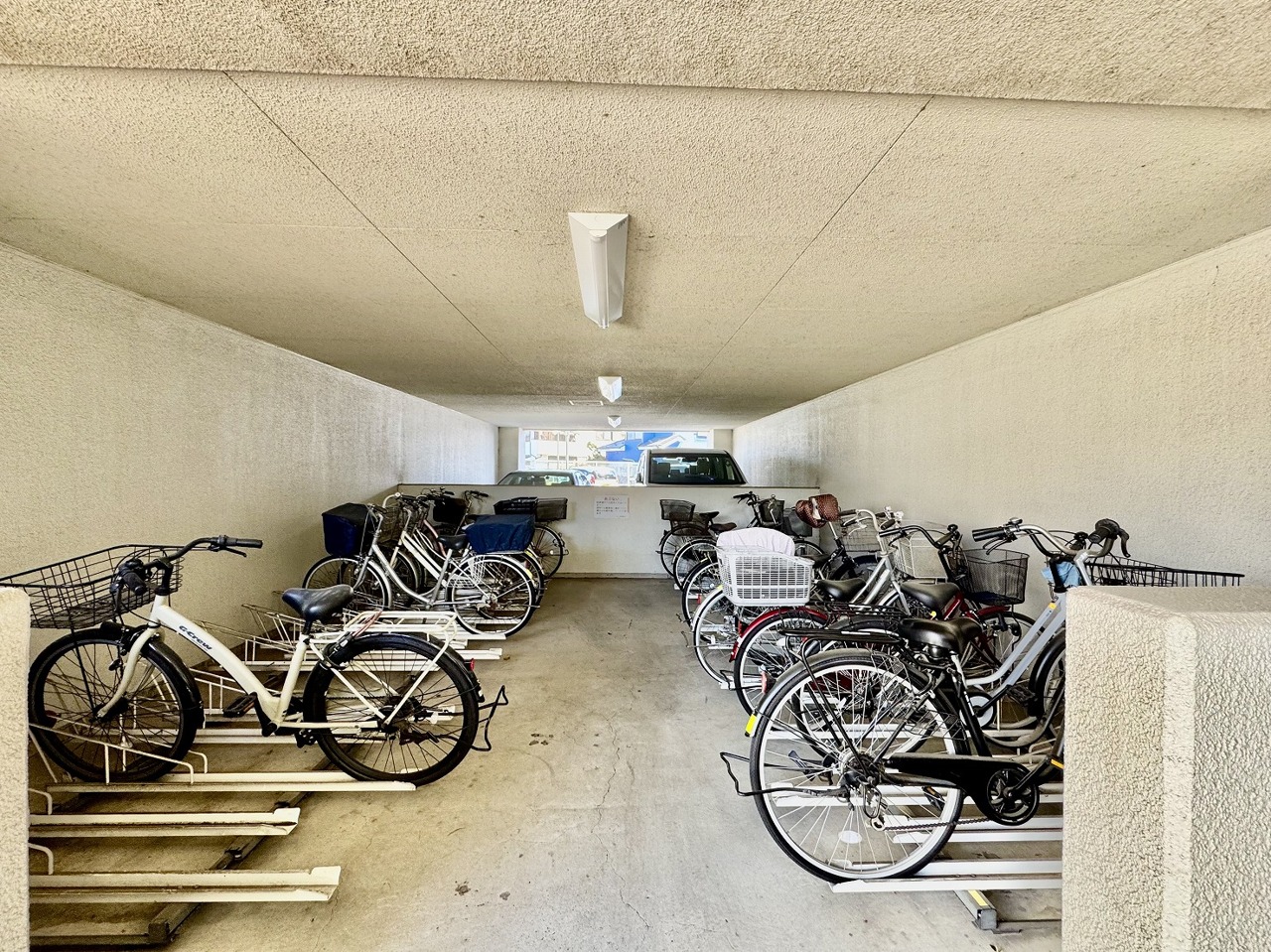 マンション敷地内の屋根付き駐輪スペース