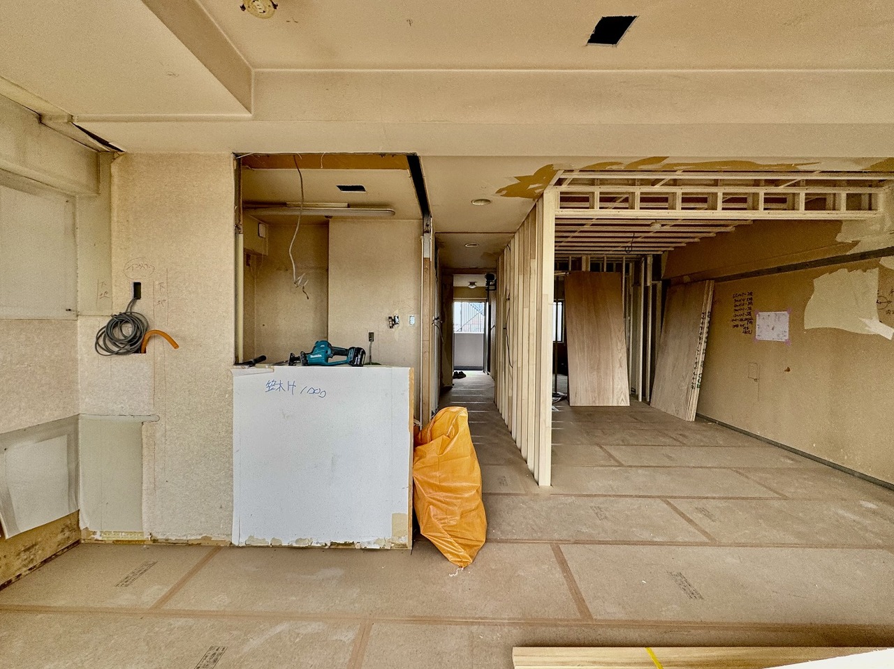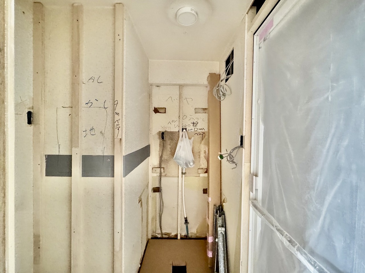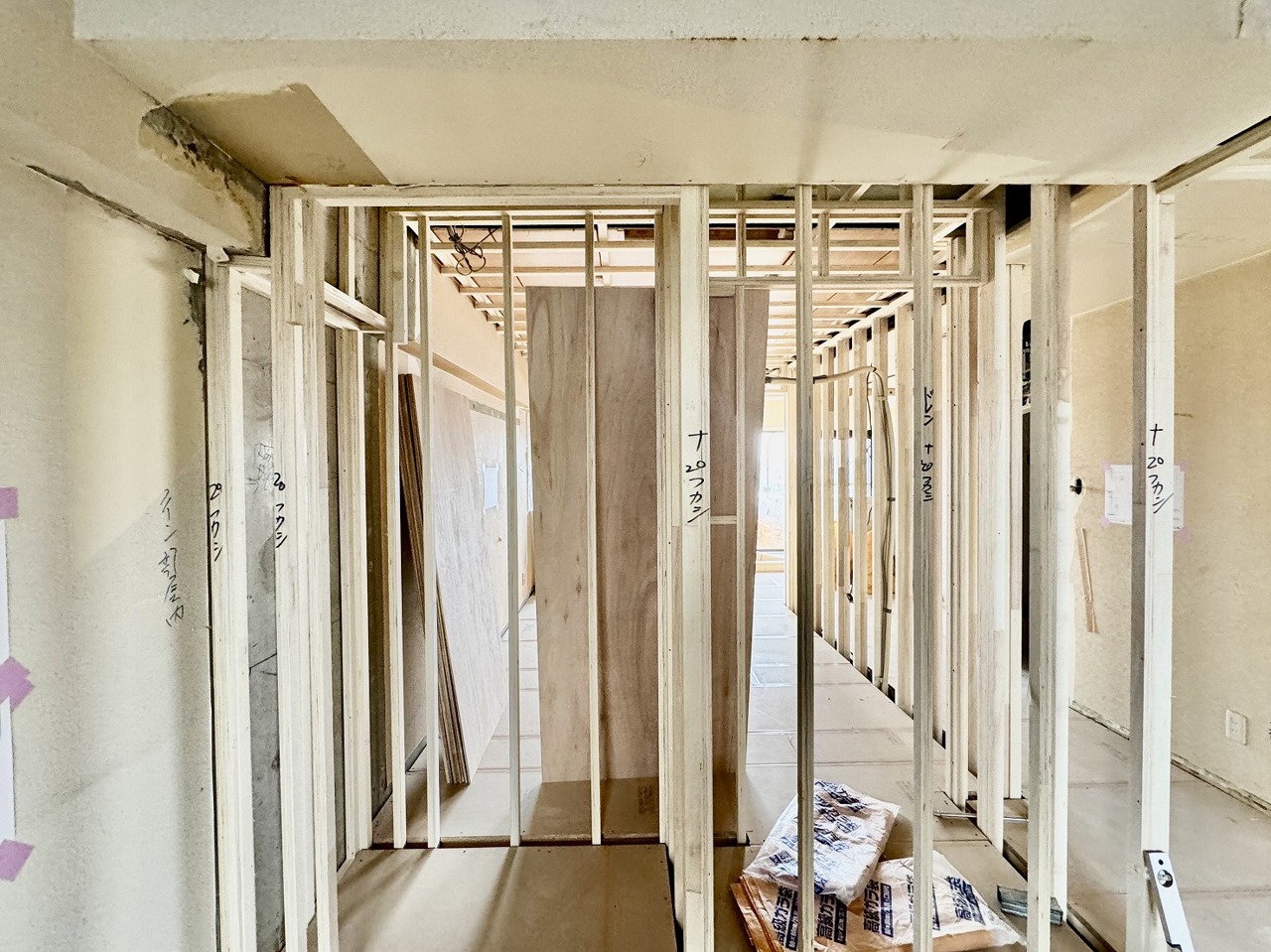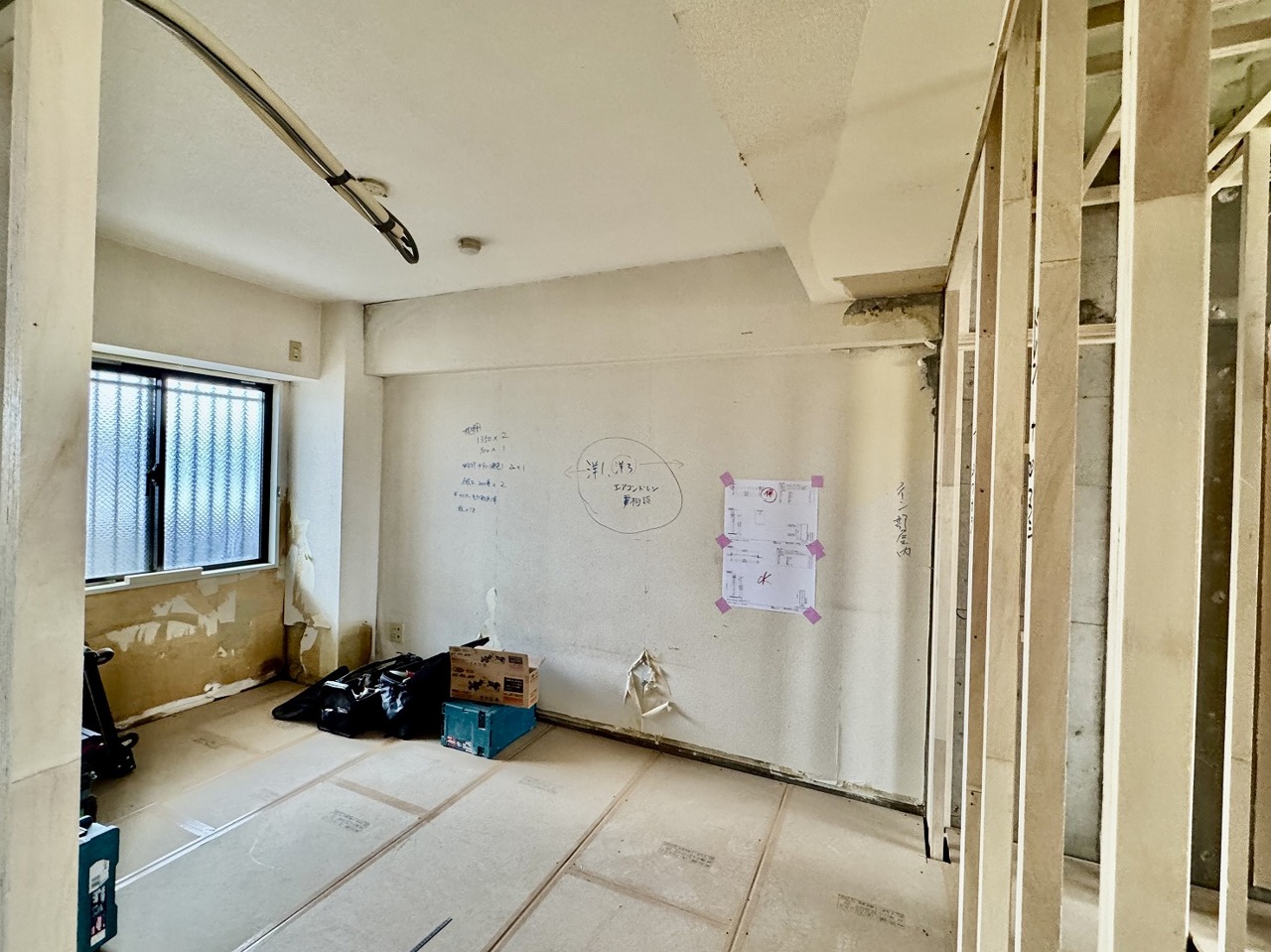 リノベーション工事中。この部屋だれの部屋にしようかな、なんて会話を現地で楽しんでください。