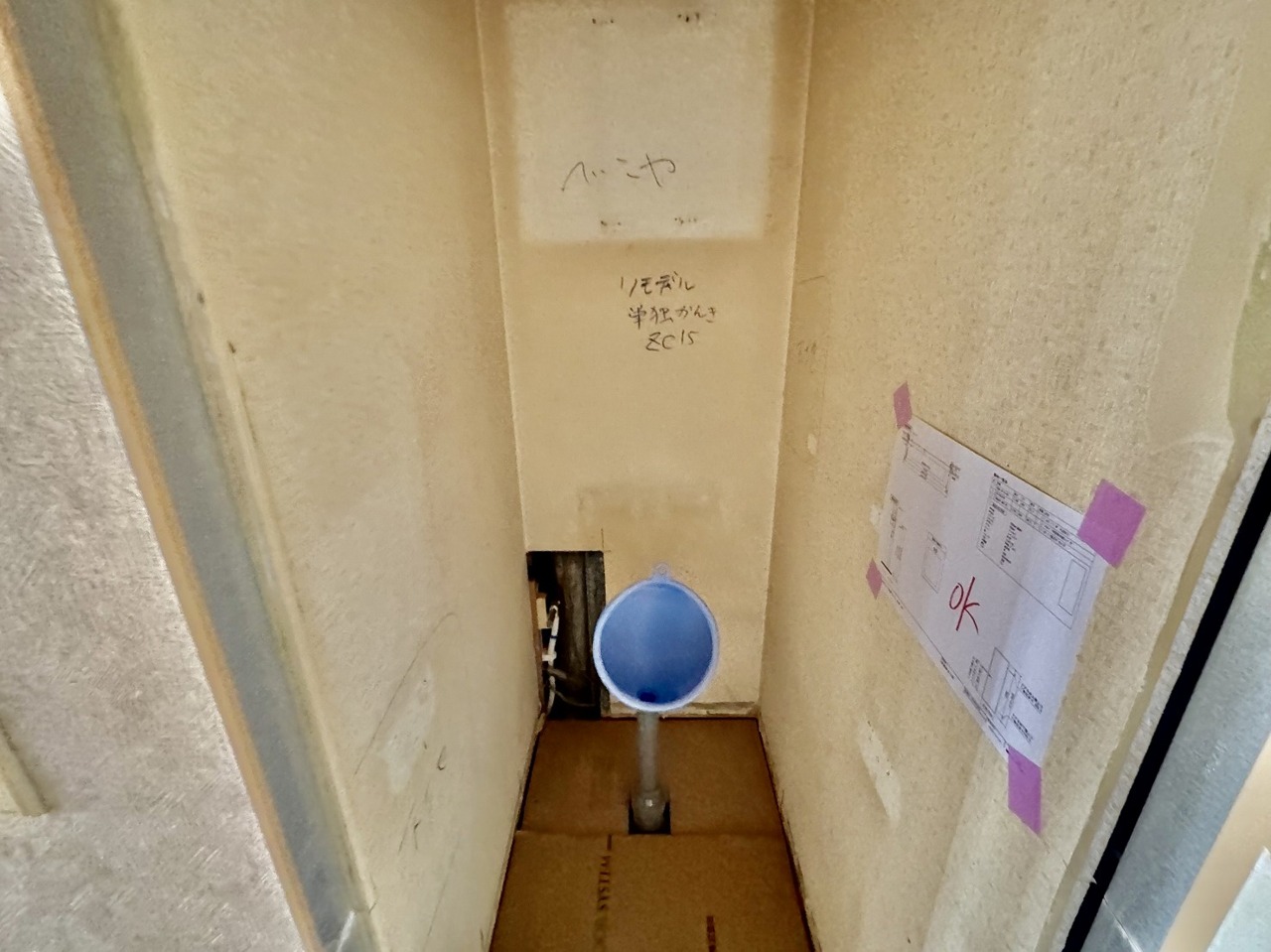 リノベーション工事中。清潔好きには欠かせないウォシュレット機能付き。